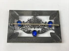 Victorian Pin/Brooch With Cut Blue Stone, Costume Jewelry, Art Nouveau Design The pin dimensions are 2-5/8” x 1-3/4”. This pin is from a Kentucky small town dry goods store early 1900’s costume jewelry inventory. From a smoke free and pet free environment. Please look at the photos carefully as they are part of the description and message me with any questions. Thank you for looking.