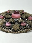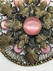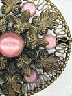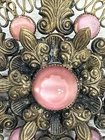 Absolutely stunning vintage brooch! The delicate pink glass fleur de lis and intricate filigree border give it such an elegant, romantic charm. Love that it has a bit of character from its age—just adds to the antique appeal. Pictures show details clearly, and seller is super helpful with any questions. Perfect for adding a touch of Victorian beauty to any outfit!