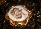 Victorian Portrait Brooch Cameo Elizabeth France Gold Hand Painted Porcelain Victorian Portrait Brooch Cameo Elizabeth France Gold Hand Painted Porcelain Antique Victorian hand painted miniature portrait of Madame Elizabeth of France, French Princess and sister to King Louis the 15th. She was an iconic figure during after after her life she was known for her virtue, piety, personality, loyalty and fashion sense. Cameo brooch in rolled gold setting circa 1880. Its colors are vibrant. It measures approximately 1 1/2 inches by 1 1/4 inches. It is rare to find a 130+ year old brooch in such remarkable condition. Closes with an old fashion C clasp. It is in good vintage condition and working order Ready to wear or gift wrap. See photos for full description and condition. Other items pictured are listed and sold separately - see our other items. We trade on eBay as seller ids: CLBurgess1 and HouseofBurgessAntiques. Thanks for looking! We appreciate your business. Offers considered. For a first look at new estate finds, add us to your eBay Favorite Sellers list. Visit our eBay store House of Burgess Antiques & Estates. We trade on eBay as: clburgess1. Thank you for looking! All serious & reasonable and serious will be considered.