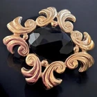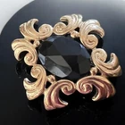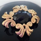 This elegant vintage brooch from the 1980s embodies the Victorian Revival style, showcasing a faceted black stone set within an intricate, gold-tone frame. The ornate scrollwork design surrounding the stone captures the opulent beauty and romanticism of the Victorian era, reimagined with a bold, dramatic flair characteristic of the 1980s. This piece is a perfect blend of vintage charm and statement style, making it an ideal accessory for anyone who appreciates classic, timeless jewelry. The Victorian Revival trend in the 1980s brought back the rich, intricate designs of the 19th century, appealing to those who loved jewelry with historic inspiration. This brooch may have adorned the lapels or evening wear of someone who cherished its elegance and ability to transform an outfit with just a touch of sophistication. Although the maker remains unknown, the craftsmanship and design reflect the era’s dedication to quality and detail. Why You Will Be Obsessed With It The Victorian-inspired design adds a touch of romantic vintage charm Large faceted black stone creates a bold, dramatic statement Intricate gold-tone scrollwork showcases quality craftsmanship Perfect for adding sophistication to formal or vintage-inspired outfits A unique piece that combines 1980s boldness with Victorian elegance Please follow our store with over 2000 vintage and antique pieces just like this, with new items added daily.