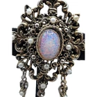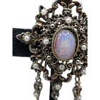This exquisite Victorian Revival Brooch Pendant combines the timeless elegance of a fleur-de-lis design with the lustrous appeal of faux opal and pearl. Ideal for adding a classic touch to any outfit. • Victorian Revival style • Features a fleur-de-lis design • Adorned with faux opal and pearl • Can be worn as a brooch or pendant Condition: Pre-Owned Good In good condition