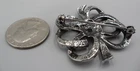 Vintage bow brooch. Antique silver tone marcasite with a purple knot at its center. 1.5" high and wide. Rolling safety clasp This pin is being stored in my pet and smoke-free studio. It will be protectively wrapped and shipped in a box .