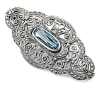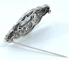 Elegant Pin Brooch Victorian Style 925 Sterling Silver English Hallmarks Set With Marcasite And Aquamarine A vintage style brooch, this elegant marcasite and aquamarine brooch takes its design inspiration from the Victorian era. Classic and stylish, this intricately cut out design brooch features a central aquamarine and a marcasite stone encrusted border. Combine Victorian influences with modern taste and we at Ari D. Norman truly believe our creations are destined to be treasured antiques of tomorrow. • Sterling silver Victorian style brooch • Set with marcasite stones and aquamarine • Comes complete with a silver care kit • Supplied in a Gift Box with Certificate of Authenticity • Dimensions: 30mm x 60mm (1 ⅛ inch x 2 ⅜ inch)