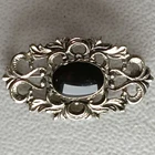Jewelry Department:FashionMetal:SilverEra:UndatedOriginal/Reproduction:OriginalHandmade:NoShape:OvalCountry/Region of Manufacture:UnknownBrand:FiligreeMain Stone Color:BlackDepartment:WomenOccasion:Birthday, Christmas, AnniversaryBase Metal:UnknownItem Length:2.5 inTheme:Beauty, VictorianColor:SilverNumber of Gemstones:1Antique:NoCountry of Origin:UnknownSigned:NoSetting Style:BezelMain Stone:EnamelVintage:YesType:BroochMaterial:UnknownMain Stone Shape:Oval