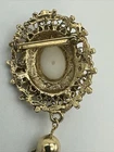 Victorian Revival Brooch w/Large Faux Pearl and Dangle Chains #597. Condition is Pre-owned. Shipped with USPS Ground Advantage.