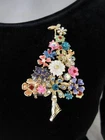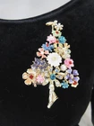 Brand new and sent to you in a pretty little satin gift pouch Victorian or romantic style rhinestone embellished tree pin Large pin MEASURES 2 3/4" high Sparkling rhinestones with flowers and fairies Gold tone base color We have a very limited quantity Thanks for stopping by!