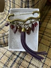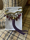 This is a Victorian vintage brooch that features a beautiful dangling tassel with glass beads. The brooch is handmade and has a retro, art deco, Victorian vibe. It is a one-of-a-kind piece of jewelry that is perfect for any occasion. The brooch has a tassel, and the theme is beauty. The brooch is an original piece of jewelry.