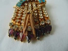 Victorian brooch purple teardrop dangles box chain blue crystals tassel