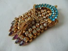 Material:RhinestoneColor:PurpleBrand:UnbrandedMetal:Yellow Gold PlatedShape:TeardropCountry of Origin:United StatesMain Stone:CrystalMain Stone Shape:RoundType:BroochMain Stone Color:BlueSeller Notes:“very good”
