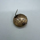 This beautiful Victorian pin/brooch features a hand-painted image of a woman holding a bouquet of flowers, dressed in a lovely pink gown. The intricate details of the brooch make it a true antique jewelry piece, perfect for any collector or fashion enthusiast. The brooch is made from unknown materials and metal, adding to its mystery and allure. It is sure to be a standout accessory and a great conversation starter.