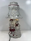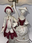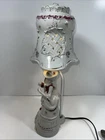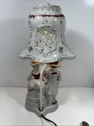 This Victorian style lamp features a multicolor ceramic design with a theme centered around people. The lamp is unboxed and was made in Taiwan R.O.C., showcasing a unique and intricate Victorian style. The lamp would make a charming addition to any home or collection, with its elegant design and attention to detail.