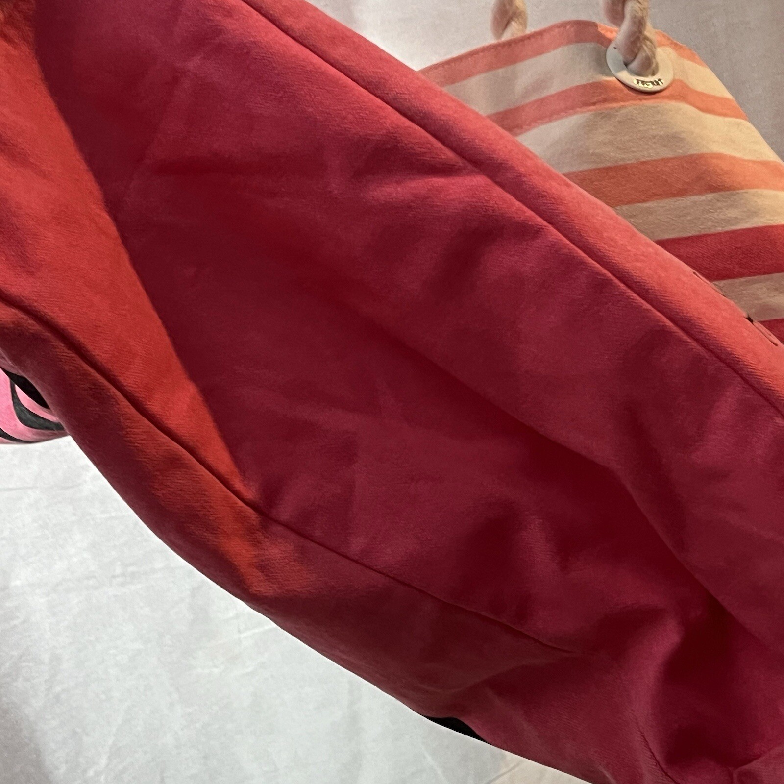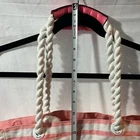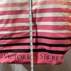 This Victoria's Secret 2018 Large Canvas Striped Tote Bag is perfect for a casual occasion, especially for a day at the beach. The tote has a rectangle shape with an open closure and double handles in white. The exterior is made of canvas with a pink and white striped pattern and the lining is also made of canvas with a pink color. The tote has a study rope handle/strap and is part of the Victoria Secret Weekender product line. The bag is accentuated with a strap accent and is a large size. It's suitable for women and has a striped theme. The Victoria's Secret Tote Beach model is a popular item and is made in China.