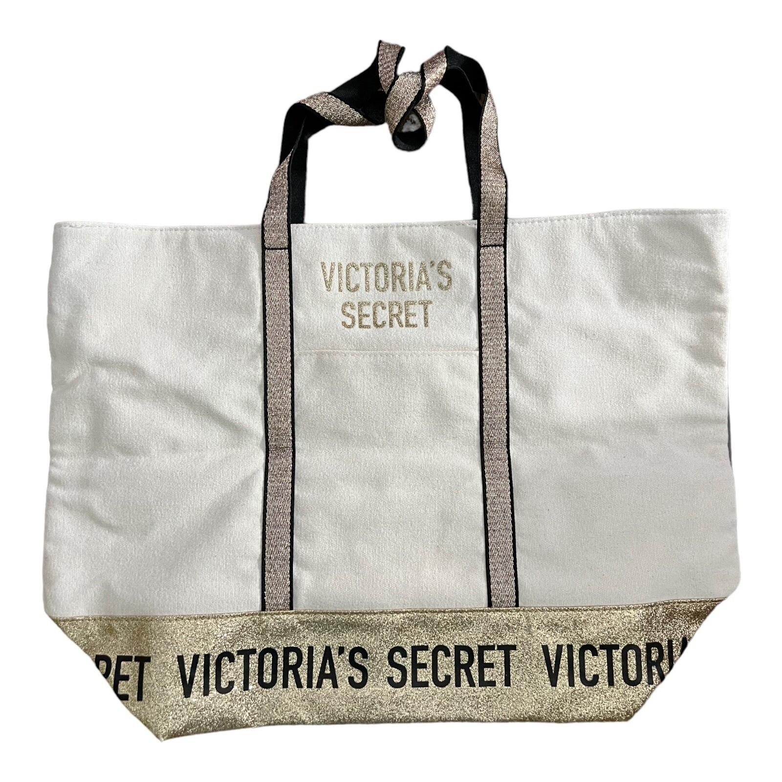 Victoria’s Secret Golden Glitter Canvas Tote Bag - 2018’s Limited Edition This bag’s first owner is me. I barely used it, and the bag condition is perfect, as seen in the photos. You will get what you see in the photos except my measuring tape 😄. If you need further assistance feel free to contact me. Key Features: Limited Edition: Exclusive release from 2018, making it a rare collector’s item Golden Glitter Design: Stylish and eye-catching canvas tote with a touch of glamour Spacious Interior: Ideal for carrying essentials, shopping, or as a statement accessory Durable Canvas: Sturdy construction for long-lasting use Versatile Use: Perfect for beach trips, shopping, or everyday outings Iconic Brand: Victoria’s Secret, a symbol of luxury and style Dual Handles: Comfortable to carry by hand or over the shoulder Product Description: Own a piece of fashion history with the Victoria’s Secret Golden Glitter Canvas Tote Bag from the limited edition released in 2018. This exclusive tote is a rare find, perfect for collectors or those who appreciate unique and stylish accessories. The golden glitter design adds a touch of glamour to your everyday outings. The spacious interior makes it versatile for carrying essentials, shopping, or using it as a statement accessory. Crafted from durable canvas, this tote is designed to withstand daily use and remain a timeless piece in your collection. Whether you’re heading to the beach, going on a shopping spree, or simply need a chic bag for your everyday activities, this limited edition Victoria’s Secret tote is the ideal choice. Embrace the luxury and style synonymous with the iconic brand.