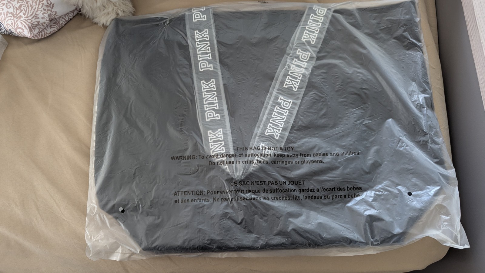 The Victoria's Secret Large Tote Bag is an extra-large travel bag made with nylon, sequins, and canvas materials in a vibrant pink color with silver hardware accents. It features a zipper closure, pink handle/strap color, and a pink lining for a stylish and coordinated look. With a spacious width of 22 inches and a height of 16 inches, this tote bag offers plenty of room for all your essentials while on the go. The Victoria's Secret brand adds a touch of glamour to this practical and fashionable accessory for women.