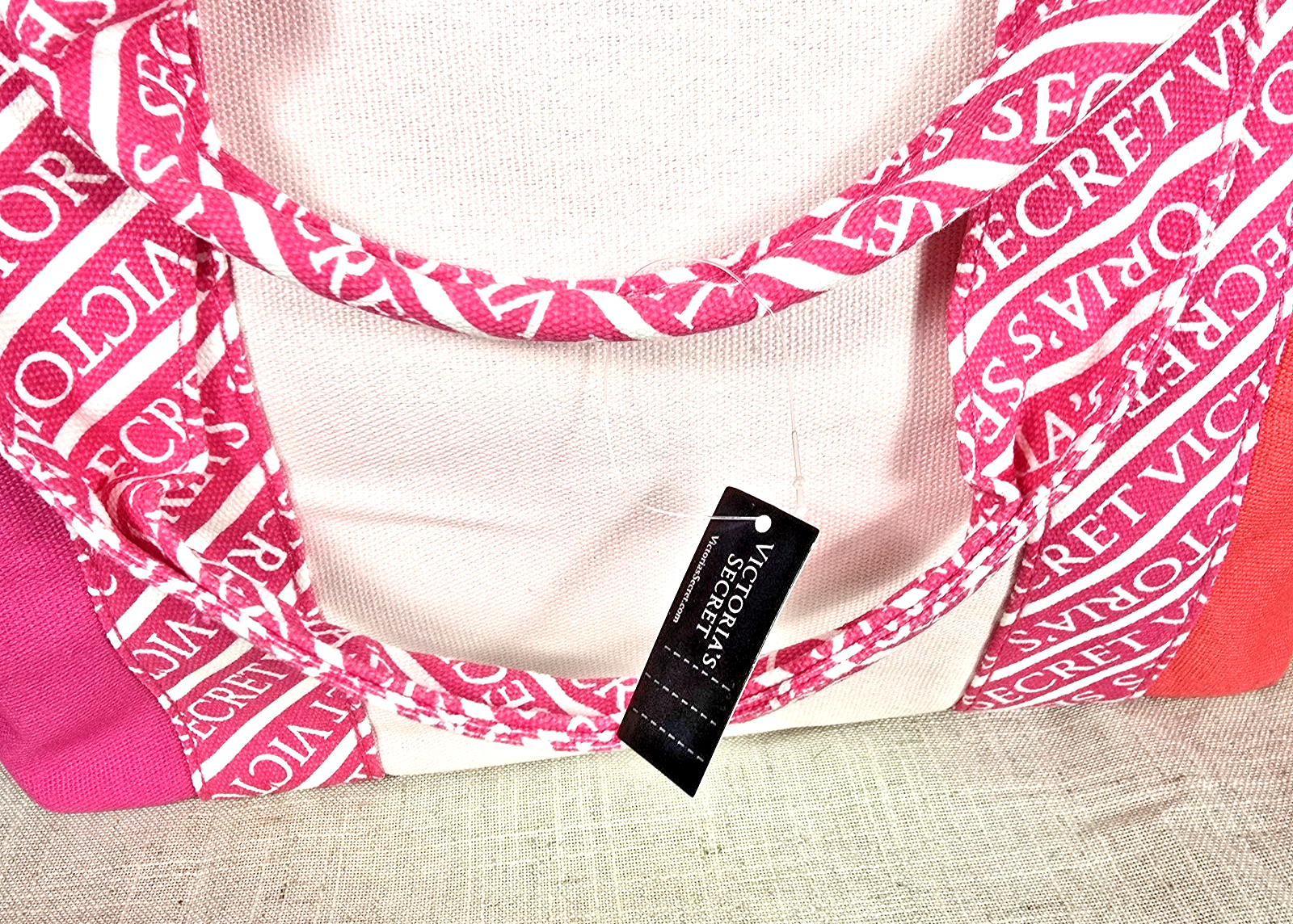 NWT Victoria's Secret Large Color Blocking Canvas Tote Pink And White This large washable, colorful tote bag is ready to travel everywhere with you You can never have enough tote bags