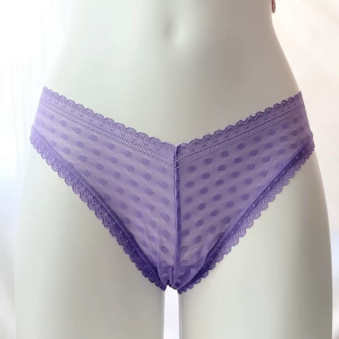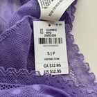 All photos are taken by Goob's Closet & Boutique and may not be reused without permission. This item is listed on multiple platforms and may sell elsewhere without notice. If you're interested, we recommend purchasing now to ensure availability. This cheeky Brazilian bikini panty features all-over dainty dot sheer lace that stretches to move with you while offering a light, barely-there feel. The low-rise fit and high-cut leg openings create a flattering silhouette, while the V-front waistband adds a playful twist that lies smoothly under clothes. With cheeky back coverage and a breathable 100% cotton gusset, it's as comfy as it is cute. Made partially from recycled materials, it’s a stylish and sustainable pick you'll reach for again and again. Details Brazilian Bikini Style Cheeky Back Coverage Low Rise High-Cut Leg Openings All-Over Dainty Dot Sheer Stretch Lace V-Front Waist Made Partially From Recycled Materials 100% Cotton Gusset Style No. 11249912 Color: Wysteria Purple Color Code (CC): 69IQ Material Body: 67% Recycled Polyamide, 17% Polyamide, 16% Elastane Gusset: 100% Cotton Care Machine Wash Measurements PINK Victoria's Secret Size Small (S) will fit US Size 4-6, Waist 26-27 inches, Hips 36.5-37.5 inches best. PINK Victoria's Secret Size Medium (M) will fit US Size 8-10, Waist 28-29 inches, Hips 38.5-39.5 inches best. PINK Victoria's Secret Size Large (L) will fit US Size 12-14, Waist 30.5-32 inches, Hips 41-42.5 inches best. PINK Victoria's Secret Size Extra Large (XL) will fit US Size 16-18, Waist 34-36 inches, Hips 44.5-46.5 inches best. Mannequin Mannequin is shown wearing a size Small (S). Mannequin measurements are: Bust 34 inches, Waist 25 inches, Hips 34 inches.