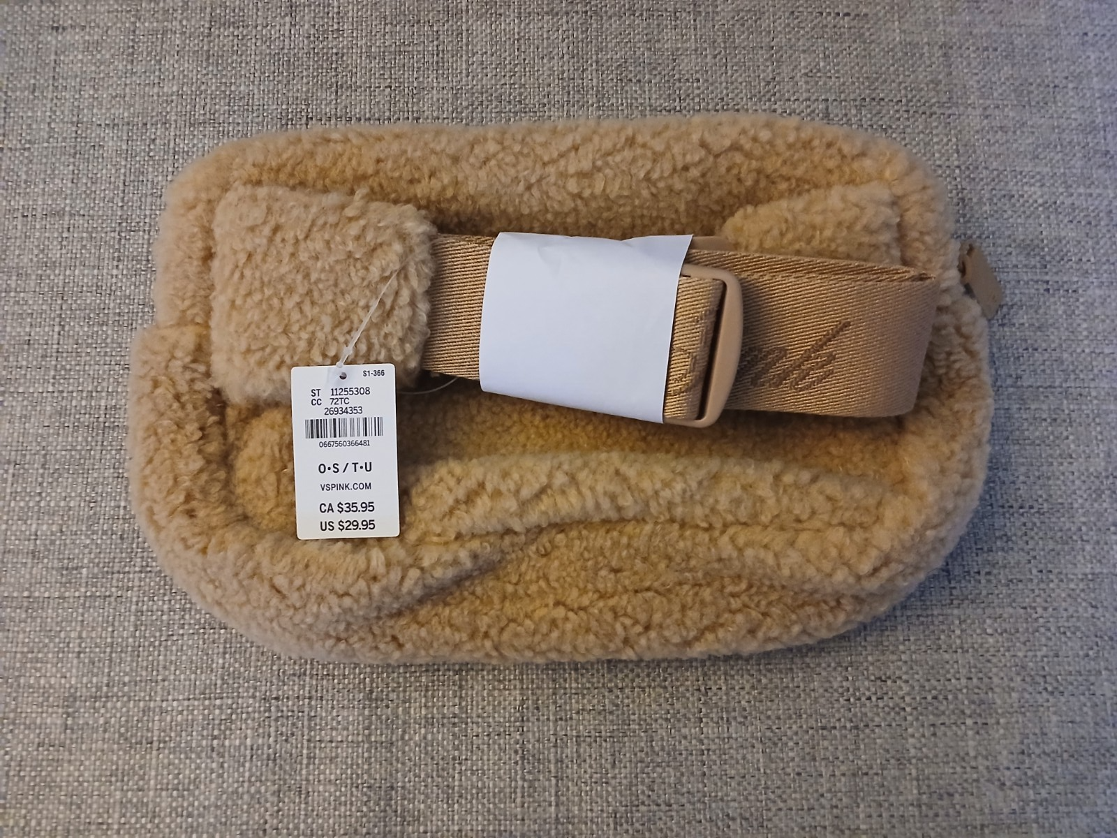 NWT VICTORIA'S SECRET PLUSH TEDDY BELT BAG PURSE HARLOW NUDE. Retails for $29.95.