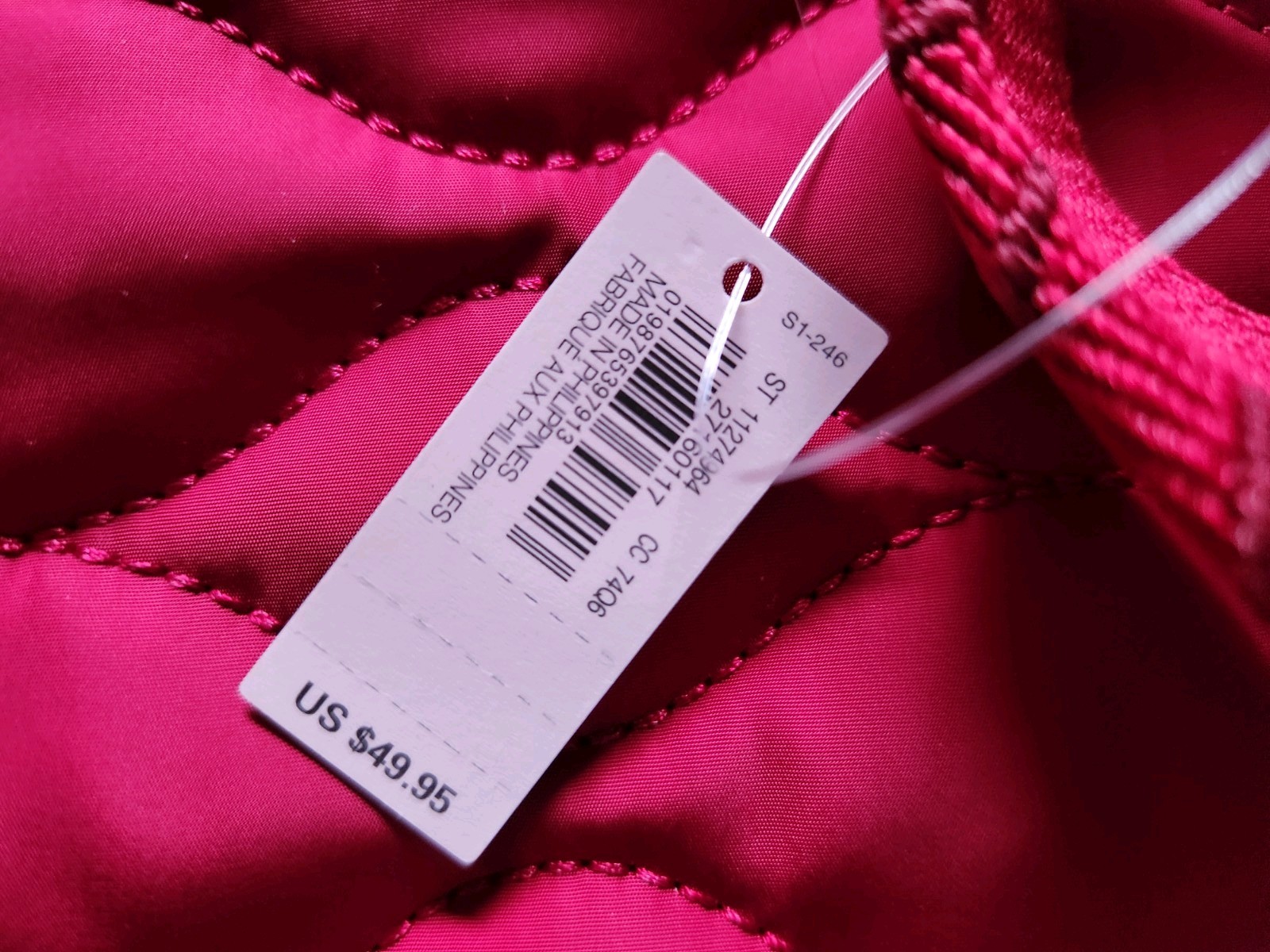 The Victoria's Secret Red Quilted Tote Bag is a stylish and spacious handbag perfect for everyday use. Made from durable polyester material, this tote features a zip closure and double red handles for easy carrying. The quilted finish adds a touch of texture, while the red lining and hardware complement the exterior design. Ideal for women on the go, this large tote from the Victoria's Secret Weekender collection is both fashionable and practical for any occasion.