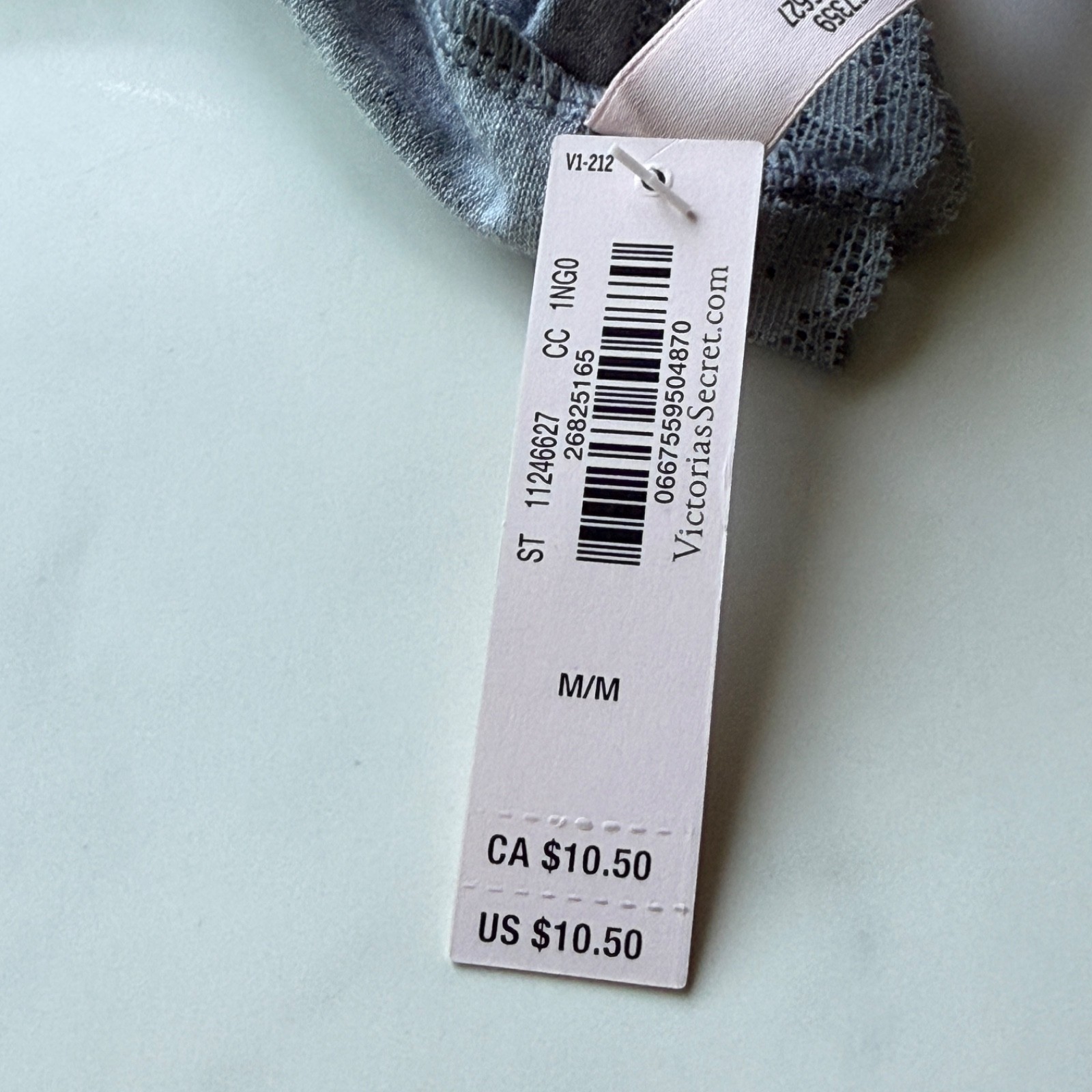 All photos are taken by Goob's Closet & Boutique and may not be reused without permission. This item is listed on multiple platforms and may sell elsewhere without notice. If you're interested, we recommend purchasing now to ensure availability. This cheeky panty blends the softness of cotton-modal fabric with the delicate beauty of floral stretch lace for a flirty, feminine feel. The low-rise fit and cheeky back coverage create a flattering silhouette, while the smooth, stretchy body moves comfortably with you. Plus, the seam down the center back enhances the fit for natural shaping. Made partially from recycled materials and finished with a 100% cotton gusset, this style is as breathable as it is beautiful—perfect for everyday wear with a little extra charm. Details Cheeky Style Cheeky Back Coverage Low Rise Smooth Soft Stretch Cotton Modal Body Floral Sheer Stretch Lace At Waist And Leg Openings Seam Down Center Back For Ideal Fit Made Partially From Recycled Materials 100% Cotton Gusset Style No. 11246627 Color: Heather Grey Color Code (CC): 1NG0 Material Body/Gusset: 57% Cotton, 38% Modal, 5% Elastane Waist/Leg Lace: 55% Recycled Polyamide, 32% Polyamide, 13% Elastane Care Machine Wash Measurements Victoria's Secret Size Small (S) will fit US Size 4-6, Waist 26-27 inches, Hips 36.5-37.5 inches best. Victoria's Secret Size Medium (M) will fit US Size 8-10, Waist 28-29 inches, Hips 38.5-39.5 inches best. Victoria's Secret Size Large (L) will fit US Size 12-14, Waist 30.5-32 inches, Hips 41-42.5 inches best. Victoria's Secret Size Extra Large (XL) will fit US Size 16-18, Waist 34-36 inches, Hips 44.5-46.5 inches best. Mannequin Mannequin is shown wearing a size Small (S). Mannequin measurements are: Bust 34 inches, Waist 25 inches, Hips 34 inches.