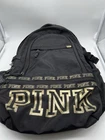 Victoria's Secret VS PINK Collegiate Backpack 17” Laptop Black Gold Metallic Used, Poor Condition, Damaged Parts same like pictures showed. Item: N41(5)