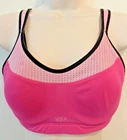 Victoria's Secret VSX sports bra 34C Hot Pink Underwire Adjustable Athletic check out my other items I have more bra's this size listed This Victoria's Secret VSX sports bra is perfect for any high-performance activity. The hot pink bra is made of a blended fabric of elastaine and nylon, making it both breathable and adjustable. The bra strap closure is a hook and eye, and the straps themselves are adjustable for the perfect fit. The full coverage cup size is a 34C and comes with underwire for added support during workouts. The back closure ensures that the bra stays in place even during the most intense gym sessions. Featuring the Victoria's Secret logo, this sports bra is the perfect addition to any activewear collection.