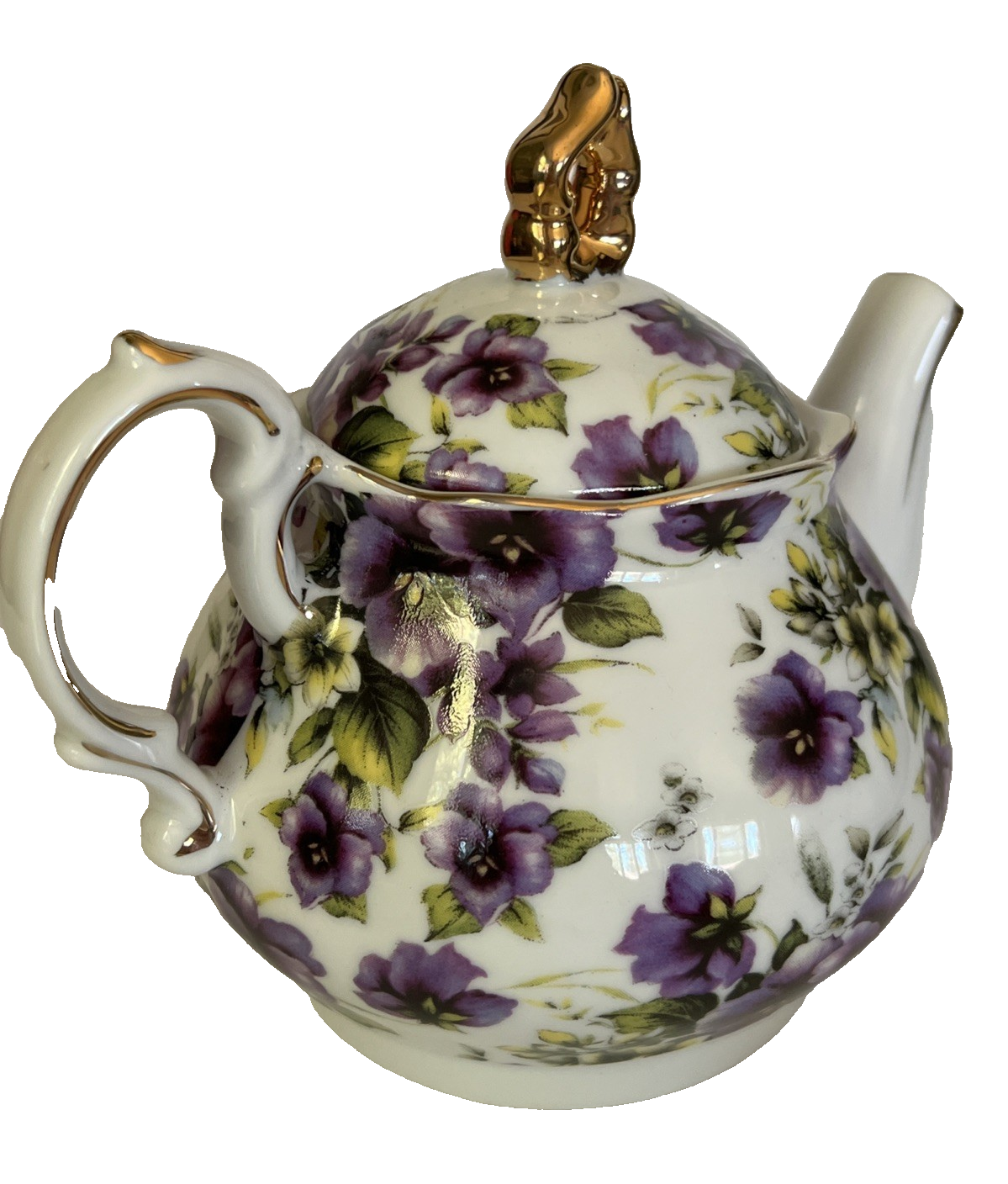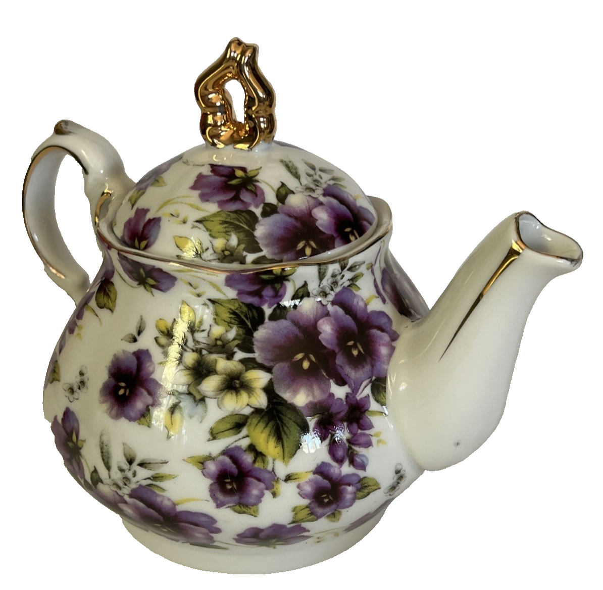 Victoria's Tea Room Individual Purple Floral 2 Cup Gold Trimmed Teapot Display I will pack with care and send it to you ASAP Thanks for looking !
