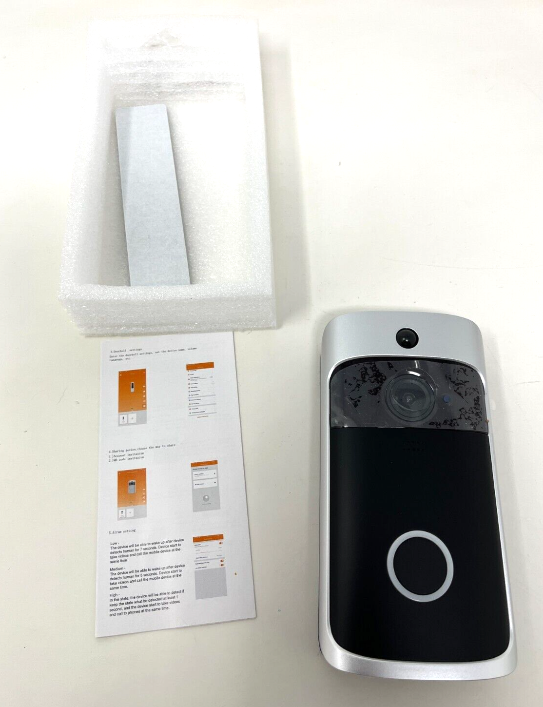Video Doorbell V5 WIFI/ HD Video/ Two Way Audio This is a new open box Box may show slight wear from storage. Please see pictures for item condition. Please check out our store "Toybox_Collect" for all other items. Pieces were not inventoried or counted. May be incomplete. Item is not tested and sold "as is"