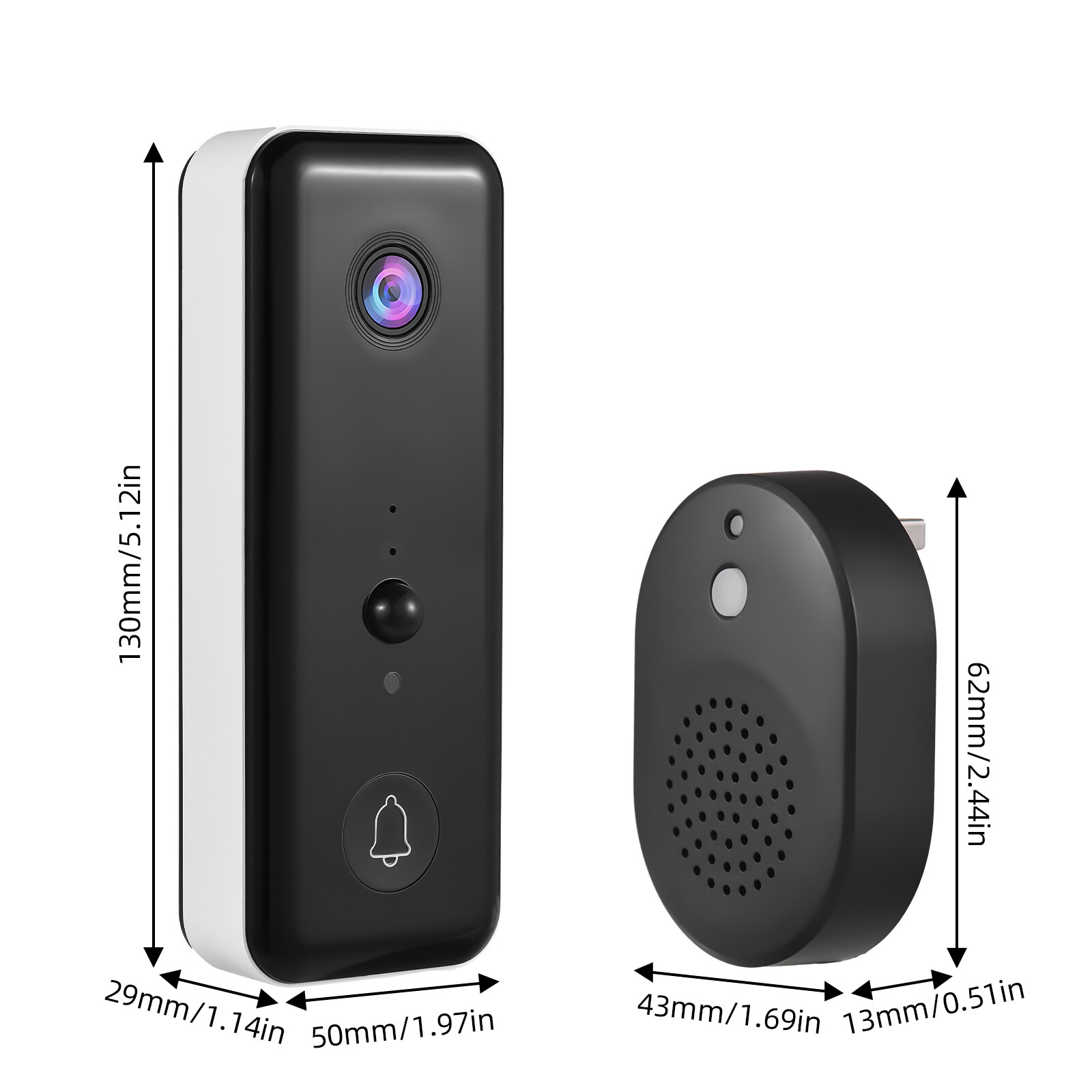 Features: 【Clear and Vivid Video】- With the door , you can enjoy high-definition (720P) video quality, allowing you to clearly see who is at your front door. The wide-angle lens (140°) captures a broader view, ensuring you don't miss any important details. 【Two-Way Audio Communication】- Our doorbell features dual-way audio communication, enabling you to speak with your visitors in real-. Whether it's instructing a delivery person or greeting friends, the doorbell allows for seamless interaction. 【Intelligent Motion Detection】- Equipped with PIR motion sensors, the doorbell cam detects human movement and alerts you instantly through the AIWIT APP. This ensures that you are aware of any activity happening around your front door, enhancing and peace of mind. 【Enhanced Night Viewing】- Our door utilizes infrared night viewing technology, providing clear footage even in low- conditions. With a night viewing distance of 6-8 meters, you can rest assured knowing that your property is under day and night. 【Easy Installation and App Compatibility】- Installing the video doorbell is a breeze. Simply connect it to your existing network and download the AIWIT APP from compatible with App Store or , or by scanning the provided QR code to download the app. The app allows you to remotely control and your front door, keeping you connected no matter where you are. Specification: Product material: ABS Doorbell size: 130 x 50 x 29mm / 5.12 x 1.97 x 1.14in Chime size: 62 x 43 x 13mm / 2.44 x 1.69 x 0.51in Product color: Black, White (Optional) Waterproof grade: IP65 APP: AIWIT : 2 x rechargeable (NOT INCLUDED) Network: (not support 5G) USB chime: 5V 1A Resolution: 720p Lens: 140° wide-angle lens Night viewing: Automatic switching; high infrared , night viewing 6-8m / 19.69-26.25ft function: Automatic white ; Automatic gain control; Automatic backlight compensation, motion detection for two-way voice calls; Ultra low consumption, remote -; Support multi-user sharing Packing List: 1 x Doorbell 1 x USB Chime 1bag x Screws 1 x Adhesive Tape 1 x User Manual