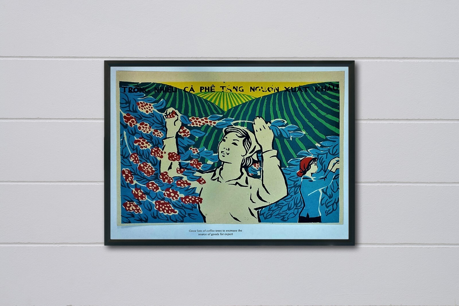 Vintage Rice Paper Vietnam War Propaganda Poster " Grow lots of Coffee Trees to Increase the Source of Goods for Export " This Poster Depicts t he I mage of W omen T aking C are of and H arvesting C offee, in the B ackground are F orests P lanted with C offee T rees. This is Vietnam's E conomic D evelopment P rogram . The C offee Tree D evelopment P rogram in Vietnam A ims to I ncrease the C ountry's C offee S upply for E xport. Coffee is O ne of Vietnam's M ost I mportant A gricultural E xports, and the G overnment has I mplemented V arious I nitiatives to S upport the G rowth and D evelopment of the C offee I ndustry. These I nitiatives I nclude P roviding F armers with T echnical A ssistance, P romoting S ustainable C offee F arming P ractices, and I nvesting in R esearch and D evelopment to I mprove the Q uality of Vietnamese C offee. SIZE: 12 x 16 Inches (30 x 40 cm) … A poster designed by the Vietnamese government in Vietnam and printed on rice paper is a piece of history that showcases the cultural and political climate of the time. The poster, created in the early 20th century, would have been used to promote various war initiatives. The use of rice paper as the medium of choice is significant, as this was a common material used in Southeast Asia at the time, lending a local touch to the poster's design and message. This poster serves as a reminder of the cultural and political influences that shaped Vietnam, and provides insight into the ways that the Vietnamese government used to control and influence the local population. It is a valuable artifact for anyone interested in the history of Vietnam and the broader story of the Vietnam war in Southeast Asia. Every Poster Comes With a English Translation 100% Made in Vietnam on Original Rice Paper DIMENSIONS : 12 x 16 inches (30 x 40 cm). QUALITY : Different from paper posters, Rice Paper Posters have better quality and longer shelf life. DECORATION : TOP MODERN! Really eye-catching! Ideal for all modern graphic & photographic designs. Your wall / room will get a very special lightness & beauty. DOES NOT COME WITH FRAME WARRANTY: Your satisfaction is 100% guaranteed. If you are not satisfied, please do no hesitate to contact us, we are willing to provide a full refund within 30 days after you receive it.
