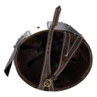 Deeply rooted in history is the nasal helmet. It was a type of combat helmet characterized by the possession of a projecting bar covering the nose and thus protecting the center of the face. The nasals of these helmets were often so large that the wearer was unrecognizable to an observer. In the Battle of Hastings it is said that William the Conqueror had to lift his helmet to show his troops that he was still alive. This is an indication of the anonymity nasal helmets produced. This helmet is made from 18 gauge mild steel and polished to shine. It would usually have been worn over a mail coif, which protected the lower parts of the head, throat and neck. The outside has extra pieces of steel riveted around the bottom, front, back, and sides. On top there is even a decorative flower to hide the intersections. Inside is a leather suspension liner with an adjustable chin strap complete with a brass buckle. Specifications: Height: 9 Inches Width: 7.25 Inches Diameter: 8.5 Inches Forehead Circumference: 28 Inches Features: 18 Gauge Mild Steel Polished Leather Interior