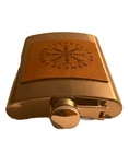 Thisis a stainless steel flask with a custom leather engraved Viking Tree of Life design. It is a collectible item and can be used for whisky and other liquors.
