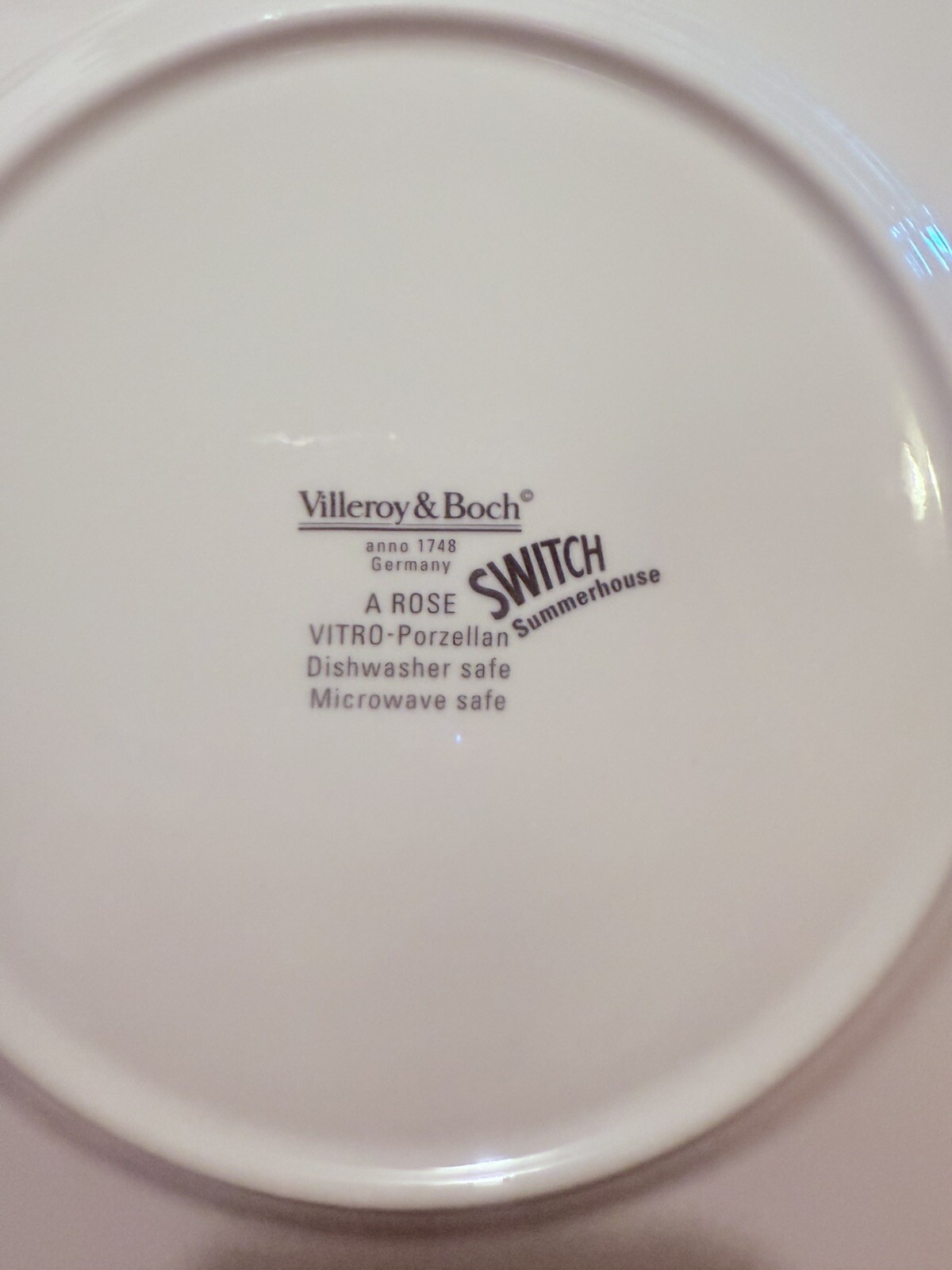 This listing is for a set of 4 Villeroy and Boch Switch Summerhouse A Rose dinner plates. Each plate measures 10.5/8 inches in diameter and is made of porcelain. The plates feature a colorful multi-colored pattern and are manufactured in Germany.