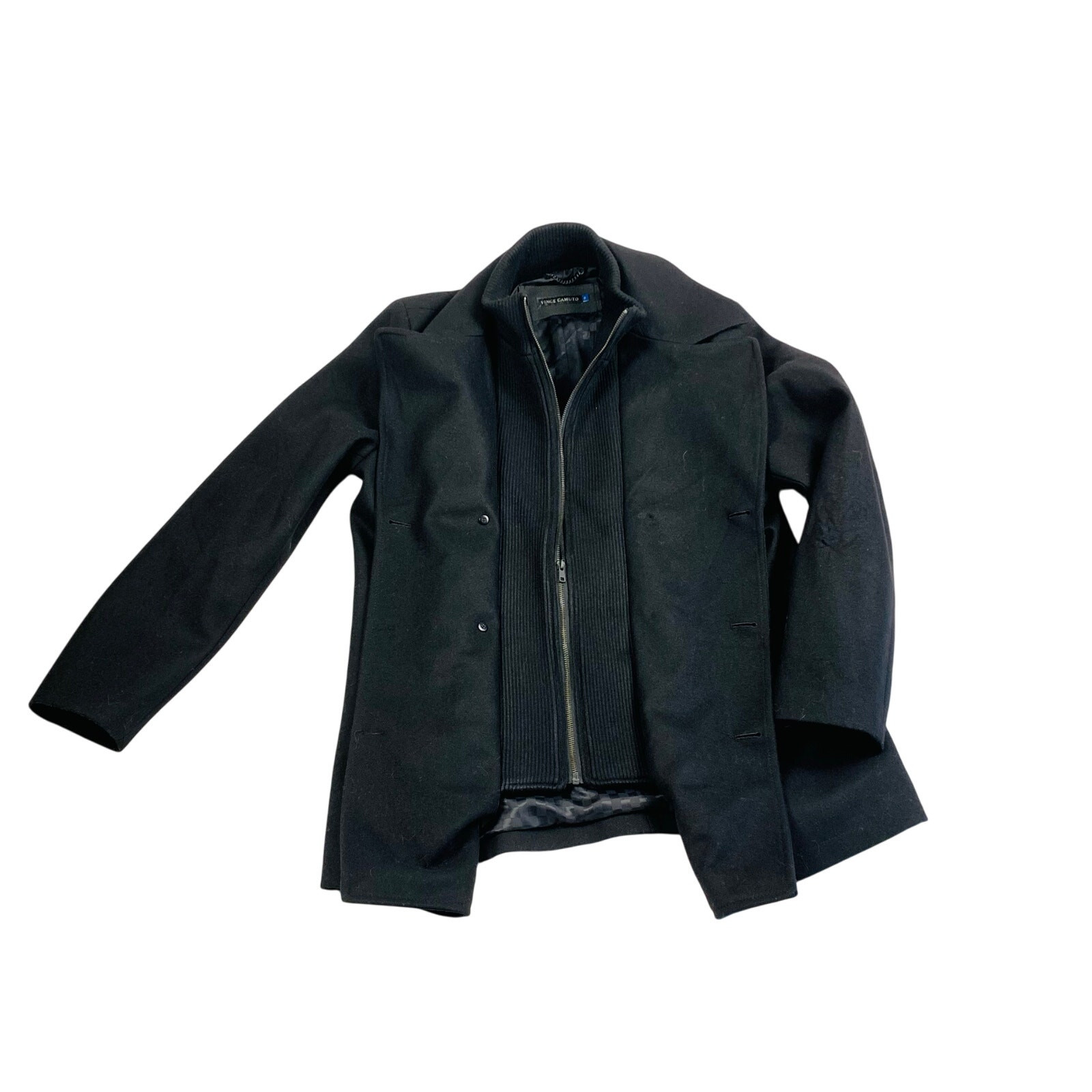 Vince Camuto Black Double Breasted Peacoat - Size M Ribbed knit /zip insert Inside pocket Angle pockts Wind/Rain resistant Lined SIZE: M CONDITION: Very Good Used Condition * small hole on the outside right sleeve. See last picture MEASURMENTS: Chest: 22" Length (back of collar to hem): 33" *Consistent 5 Star Seller - Shipping M, W, F & SA *Feel free to Send me an OFFER - All Reasonable OFFERS Welcome! *From a Smoke-Free/Pet Friendly Home *Check out my closet for other similar sizes & don't forget to BUNDLE for more Discounts!! TAGS: Vince Camuto Black Double Breasted Peacoat - Size M Mens Peacoat Mens Black double-breasted peacoat Vince Camuto coat Classic black peacoat Ribbed knit insert coat Military-style peacoat Timeless winter coat Elevated utilitarian jacket Luxe lifestyle outerwear Minimalist tailored coat Streetwear layering piece Rain & wind-resistant coat Fisherman-style peacoat Monochrome winter fashion Navy-inspired peacoat Relaxed tailoring coat Dog walker chic jacket Double-breasted wool coat Functional yet stylish coat Versatile layering outerwear Cold-weather statement coat tailored coat City-chic winter jacket Structured black overcoat All-season wardrobe staple Classic Timeless outerwear Fishermany Inspired Ivy League Layering Statement outerwear Elevated Utilitarian Streetwear Luxe Lifestyle
