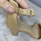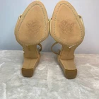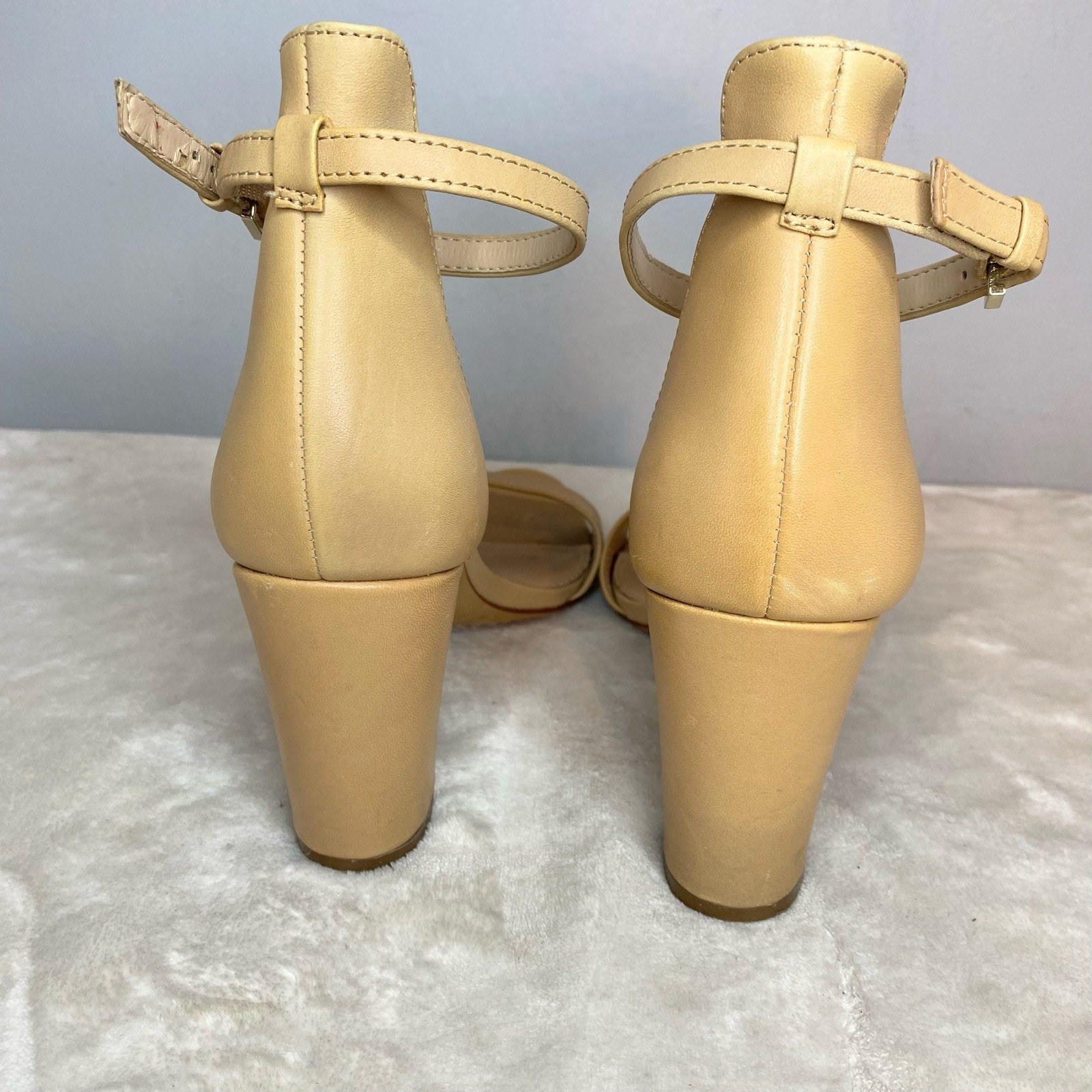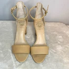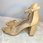 A barely there sandal that puts the focus on pretty feet is wrapped with a slender ankle strap and lifted by a covered block heel for added comfort.Sizing: True to size. M=standard width. Open toe. Strap vamp. Leather and synthetic construction. Ankle strap with adjustable buckle closure. Lightly padded insole. Nice preowned condition Please view all pics Size 7 Smoke free No box Fast shipping