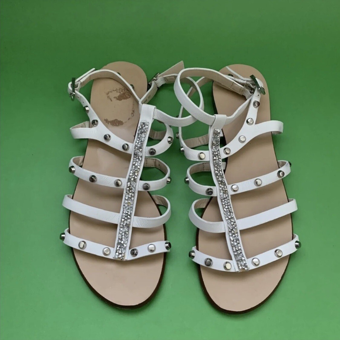Vince Camuto Women Jakela White Stud Rhinestone Strap Flat Leather Sandals 6.5M