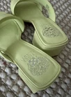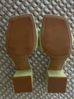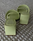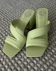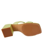 Sole material - Synthetic Rubber Outer material - Leather Closure type - Buckle Color: Celery Green Upper: Leather Design: Slip-on dress sandal Toe Type: Open, square Back: Open Lining: Manmade Insole: Padded Sole: Manmade Sandal: Block Heel Fit: True to size Back Heel Height: Approx. 3"H self-covered heel Description The wear everywhere sandal. This proven construction with sturdy block heel will carry you wherever you need to go throughout the day. Dependent on the upper, the heel is either covered in a matching leather or stacked. With two barely puffed straps, one straight across the toes and one reaching diagonally back up and over your arch, you can travel securely and confidentally wherever the journey takes you.