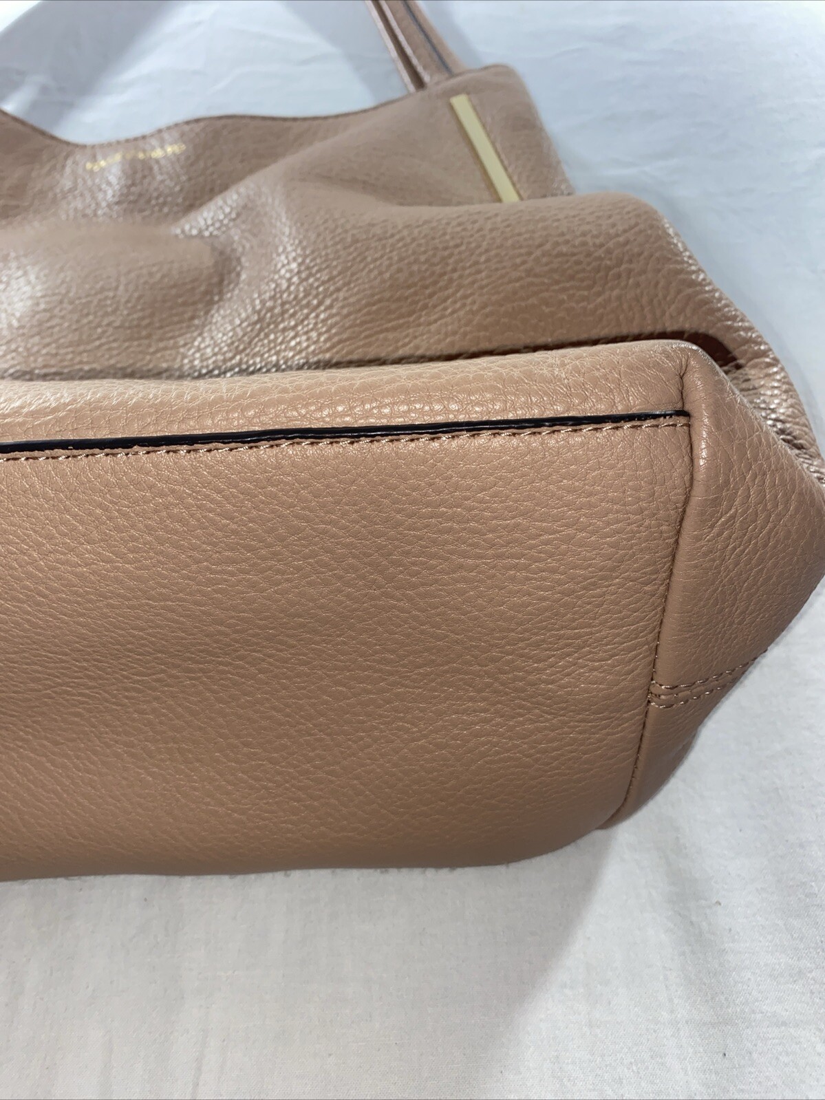 Vince Camuto Brown Leather Large 3 Divided Sections Shoulder Bag 16x12x5". Condition is Pre-owned. Shipped with USPS Ground Advantage.