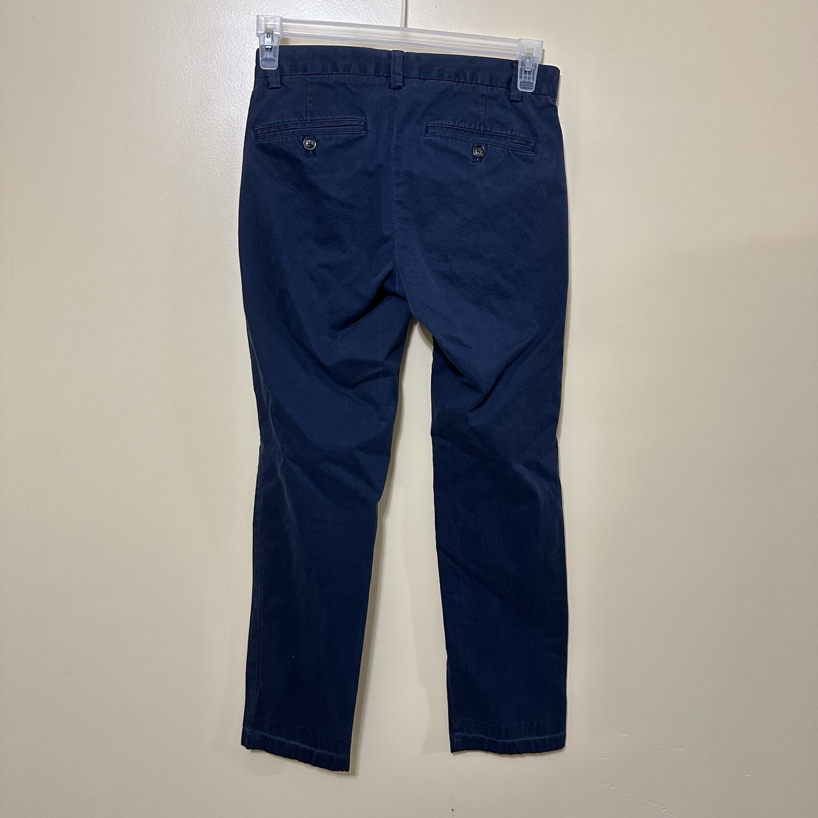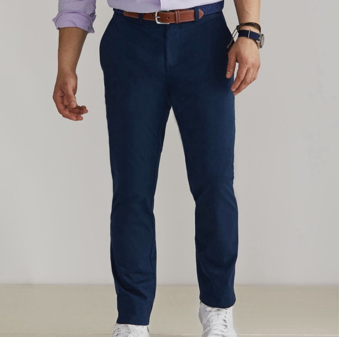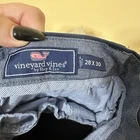 Vineyard Vines Navy Blue Mens 28x30 Breaker Pants Chino Stretch Straight Leg Very good pre-owned condition, no flaws. Approximate flat lay measurements: Length-36.5” Waist-13.5” Inseam-28” Rise-8.5” The Vineyard Vines Navy Blue Men's 28x30 Breaker Pants are a versatile and stylish choice for various occasions such as travel, casual wear, or workwear. Made from a comfortable knit fabric with added stretch, these Chino pants feature a straight leg and a low rise fit. The pants are designed with a zipper closure, button accents, and pockets for added functionality. The navy blue color and subtle logo detail make them a classic option for those who appreciate a preppy and timeless style.