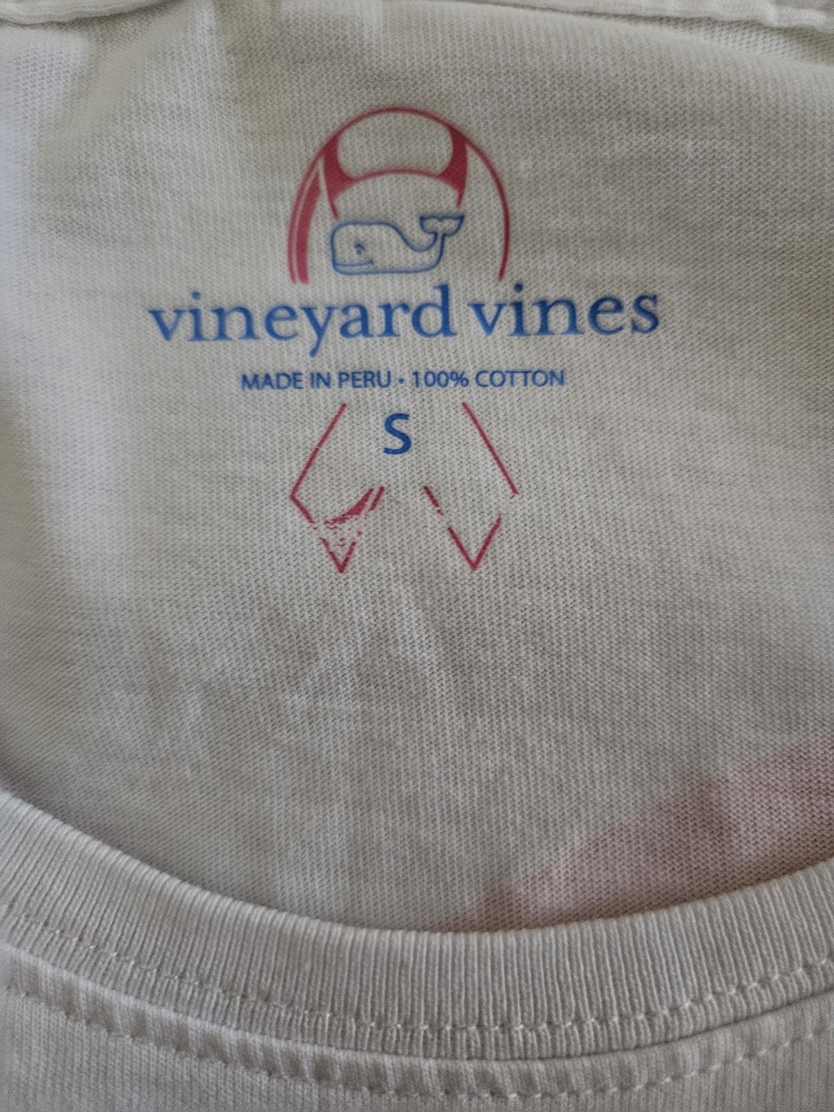 Made from 100% cotton. Only worn once. Smoke free home. Vineyard Vines Breast Cancer Awareness Ribbon T-Shirt Tee in white and pink is a stylish and comfortable option for women looking to show support for breast cancer awareness. Pullover tee features a crew neck and short sleeves, making it perfect for casual, workwear, or travel occasions. The shirt is adorned with the Breast Cancer Awareness Ribbon and the Vineyard Vines logo, adding a touch of classic style to the design. With a regular fit and S size, this tee is a must-have for those looking to make a statement while also staying on-trend. FREE SHIPPING!!