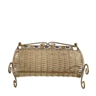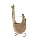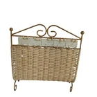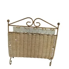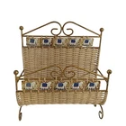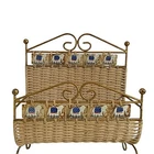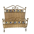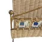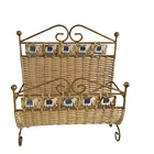 Add a vintage touch to your home with this handcrafted wicker magazine holder. The unique ceramic tile design features an elephant and is finished in beige and blue with white accents. Measuring 6 inches in length and 14 inches in width, this free-standing rack is perfect for holding your favorite magazines and decorations. The assembly-free design makes it easy to use and the easy-care instructions ensure that it will remain a long-lasting addition to your home. Ideal for teens and adults, this wicker magazine holder is suitable for use in the bathroom, bedroom, or living room. Pre-owned good condition, 2 tile staps broken as indicated in photos. Ready to Ship