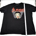 Vintage 00s Y2K Betty Boop Double Graphic Tee 100% Cotton Made in Honduras Black Betty Boop ANGEL Graphic on Front Large Betty Boop Sweet But Strong Graphic on Back Pullover Crewneck Collar Short Sleeve Thin, Lightweight! Women's Size 2X Refer to measurements below to ensure accurate fit before purchase! 16" shoulder to shoulder 19" armpit to armpit (chest) 22" sleeve length 4" arm opening 25" full length from shoulder to hem 20" hem Measurements made with garment laying flat Great vintage pre owned condition. Very gently owned. Has wrinkles. Clean and from a smoke free home.
