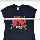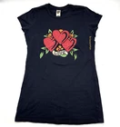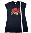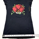 Ed Hardy Christian Audigier Vintage Love Kills Slowly Long Red T-Shirt XS Vintage 00s Y2K Ed Hardy Hearts Flowers LOVE Rhinestone Black Long T-shirt L 100% Cotton Made in United States Black Pullover 3 Hearts and Flowers with word 'LOVE' Graphic Print on Front 'By Christian Audigier' Printed Down Left Ribs 'DON ED HARDY designs' Print on Back Red, Orange, Green Rhinestone Accents Crewneck Collar Baby Doll Short Sleeves Lightweight Long Slim Fit Moderate Stretch Women's Size L Refer to measurements below to ensure accurate fit before purchase! 13.5" shoulder to shoulder 17" armpit to armpit (chest) 4.5" sleeve length 5.5" arm opening 27.5" full length from shoulder to hem 17.5" hem Measurements made with garment laying flat Excellent vintage pre owned condition. Very gently owned. No rips, tears, stains, holes or other notable flaws Clean and from a smoke free home.