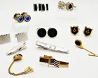 Assortment of signed & unsigned cuff links tie bar tie tack pins Vintage Lot 10 Mens Jewelry Accessories Silver Gold Tones Swank Hickok This lot is vintage with brands shown Hickok Swank others unknown The metals are unknown variety silvers gold tones with black enamel, possible onyx and lapis Various styles and shapes With a 57 year pin Washington Dc Capital added in. Enameled American flag bar Fleur de lis tie bar Silver tone Hickok tie bar USA Silver tone & Lapis cuff-link Masonic gold tone cuff-link Various shapes and styles All in working good condition with some minor wear Some have no wear at all and in very good condition Square silver needs TLC cleaning Detailed photos Sold as in photo. No returns If you have any questions about this product, please message me. Thank you for looking. Enjoy your day! Please remember: Vintage is older and used jewelry or others as stated in a listing. Some jewelry I wipe down. I usually do not want to damage and won’t use harsh cleaners. I leave the cleaning choice for the buyer. I check the quality & structure of the product. I state any flaws I see, as best I can. Photos are as is before being shipped. Vintage jewelry is aged jewelry, as you know it will have signs of wear. Please reach out if you have an issue with your product before giving your review so we can resolve it the best we can! All shipments are sent within 1-3 days after payment. We always produce a tracking number. Combined postage is available. We pack larger packages with bubble wrap and paper with a tight hold in our boxes. We recycle good boxes. Fragile is written on box when needed. Insurance is paid for most orders. Insurance is added on some shipping as handling charges if needed. Shipments are UPS, Priority Mail, and Ground advantage.