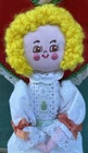 Vintage 11” tall ANGEL TREE TOPPER with embroidery and Eyelet Lace. Heart Design. Made by House of Hatten Christmas Decor. Some minor signs of age: small light spots on dress fabric. Have other vintage Christmas dolls listed.