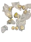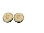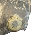 Vintage 11 Polished Brass Beige & 1 Blue Flower Cabinet Drawer Knob Pull with Screws 1.25”W x .75”L