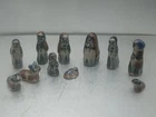 This vintage set of ten Mexican folk art pottery pieces is a beautiful addition to any collection. The blue ceramic material adds a pop of color and the handmade aspect makes each piece unique. The provenance of this set is not available, but it is clear that it was made with care and attention to detail in Mexico. The pieces in this set are perfect for display or for use in decoration. The intricate designs and attention to detail make them a true treasure for any collector. Don't miss out on the opportunity to own this stunning set of Mexican pottery.