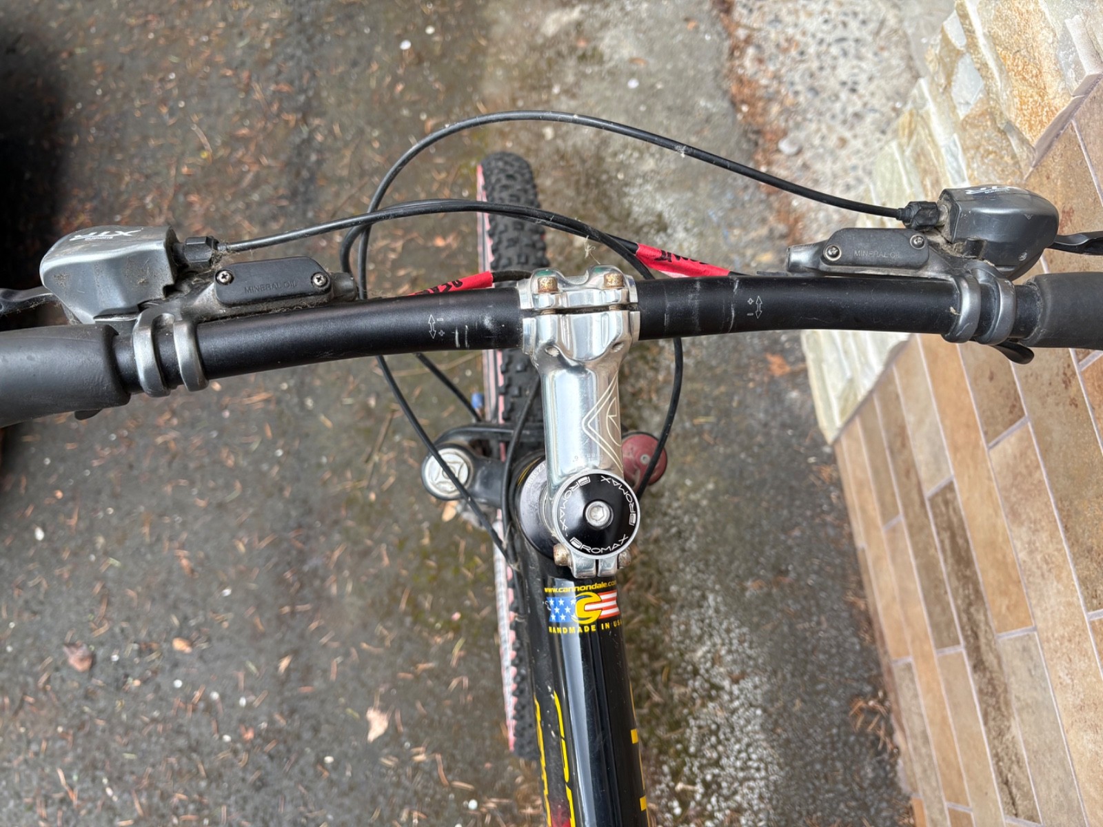 The Vintage 15.5” Cannondale JEKYLL Lefty Fork Full Suspensión Mountain Bike 26” is a classic piece of sporting goods, featuring a flat bar handlebar and 26-inch wheels perfect for off-road adventures. This mountain bike boasts a full suspension system, with both front and rear suspension, providing a smooth ride over rugged terrain. The bike is crafted from lightweight aluminum and equipped with 27-speed derailleur gears for easy and precise gear changes. With a unique color combination of yellow, red, and black, this vintage Cannondale JEKYLL model is a stylish and functional choice for any avid cyclist. Bike has been in storage for several years. One owner. Brakes need to be replaced, parts are included. Tires are original so need to be replaced. Fun project for someone with tools/time.