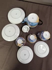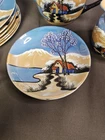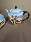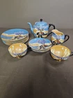 Vintage Japanese Lustre Ware Tea set. Read entire description. 1 teapot with lid (2pcs) 2 tea cups 1 creamer cup 5 saucers 6 dinner plates Teapot has a chip on spout (shown in picture) Please ask questions prior to bidding or purchasing. Additional pictures are available upon request. Please review all pictures as they are part of the description. Thanks for looking and check out my other auctions and