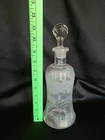 Etched Whiskey Decanter Clear tall with fitted glass stopper Whiskey Decanter 1870's Grant Bar Bottle Boston Sandwich Cut Glass w/ Stopper 11.5in tall beautiful design - etched with the word "Whiskey" on the front no markings on bottom Shipping is based on size weight and description