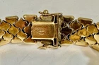 This is a beautiful 18k Tri color Gold bracelet with intricate design featuring cross diamond cut and scales pattern . It has a push lock safety , secure clasp and weighs just over 35 grams on my jewelry scale Don’t wait for gold prices to climb ! Purchased by my dear mother while in Peru in the early seventies one of the safety hooks is a little tight but am sure it can be adjusted. I could probably fix it but do not want to take a chance. I’m sure it won’t be a problem but need to disclose The bracelet is perfect for any occasion, whether it's for an engagement, birthday, or even Valentine's Day. The item length of the bracelet is 7.5 inches, making it suitable for most ladies. It is 1/2 inch wide ideal gift for your special lady BE SURE to ask any and all questions . I try to check messages every night but please ping me again if I don’t reply quickly … Please do remember to ask any and all questions before purchase It probably will be shipped sooner than stated but right now I cannot drive so I have to wait for family